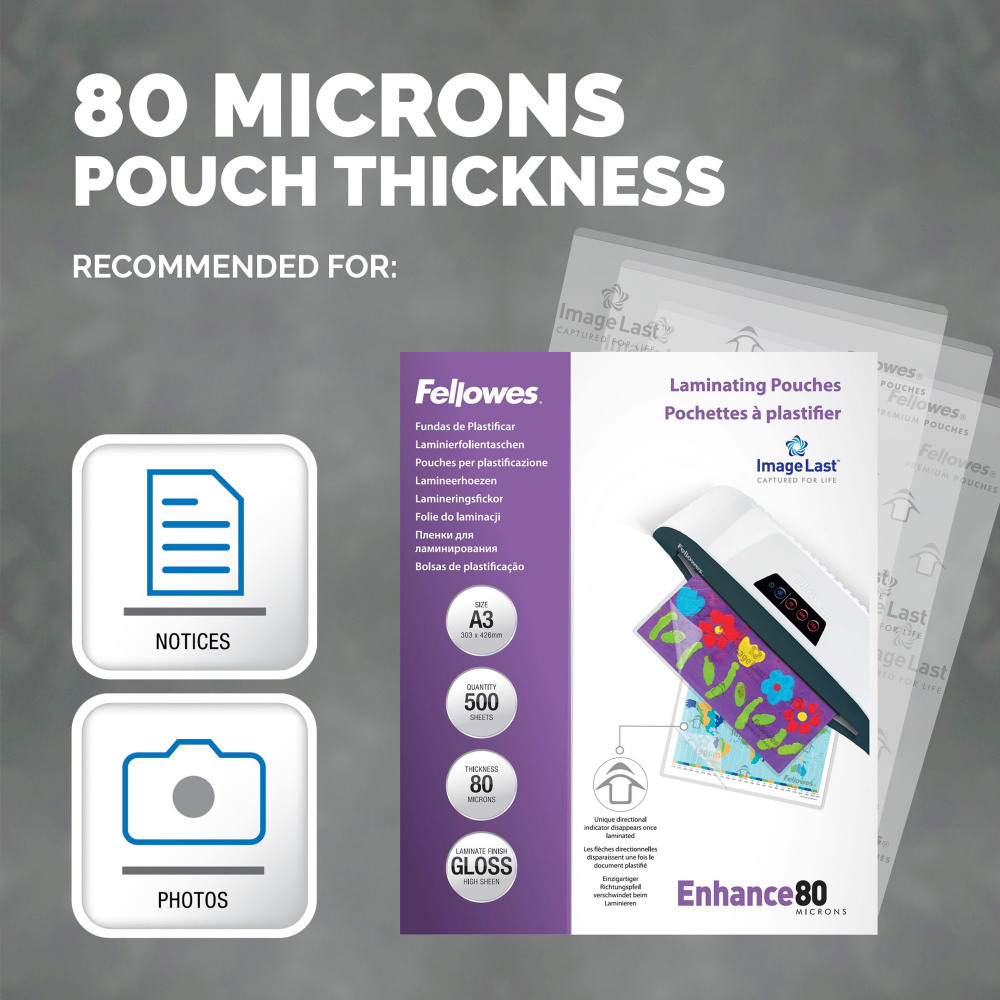 - GREAT QUALITY - Enhance 80 Micron (2 x 80 Micron) A3 laminating pouches are perfect for use at home or in the office and are compatible with all popular brands of laminator
