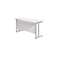 Twin Upright Rectangular Desk: 600mm Deep 1400X600 White/Silver